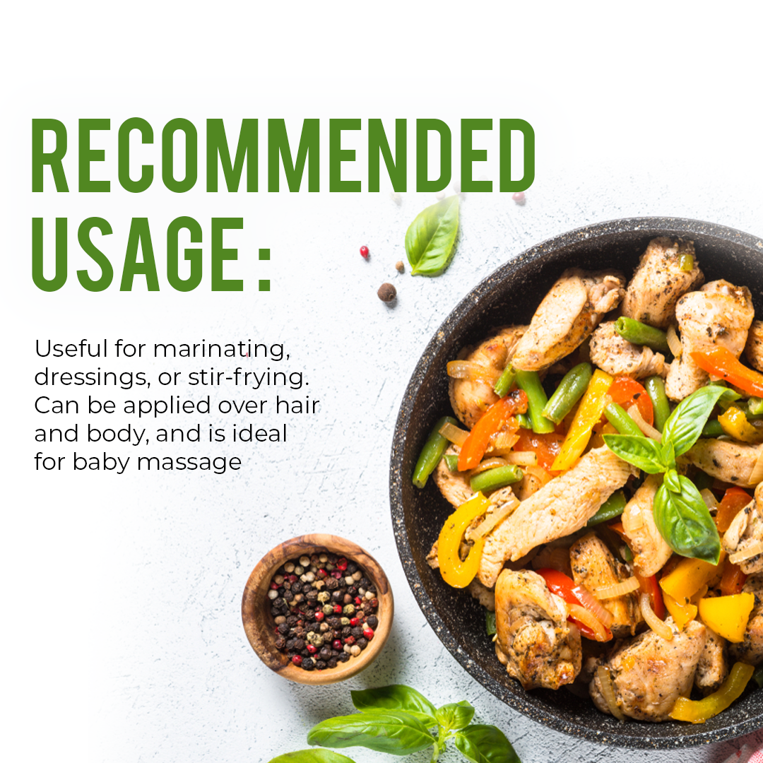Pure Nutrition Vitals Raw Cold Pressed Virgin Olive Oil serves as an excellent moisturizer for skin and hair. Regular application improves hair and skin texture. It is rich in MUFA (Mono Unsaturated Fatty Acids), which helps improve the lipid profile of the body. It also has anti-inflammatory properties and helps in weight management.